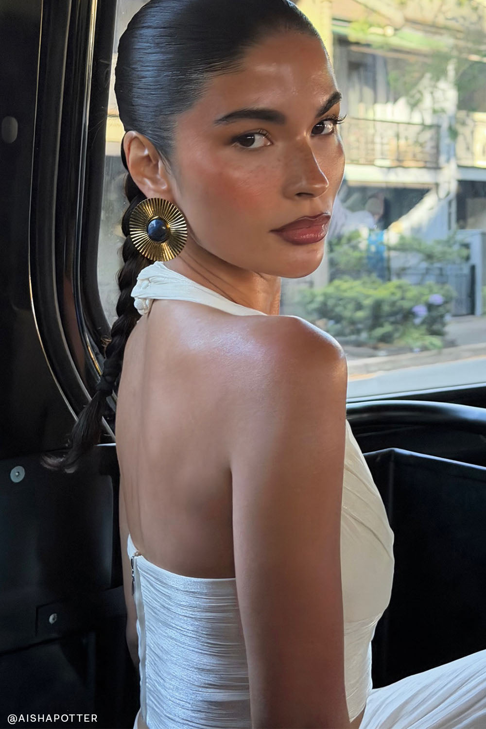The MAISIE Round Gemstone Earrings bring a bold yet refined touch to any look. Crafted with a gold-toned finish, each earring features a marble enamel centre stone framed by a textured, crimped metal base that catches the light beautifully. Designed in a large rounded silhouette, these earrings are finished with a post and butterfly backing for secure wear. Equal parts statement and sophistication, these earrings were made to elevate both day and evening dressing.